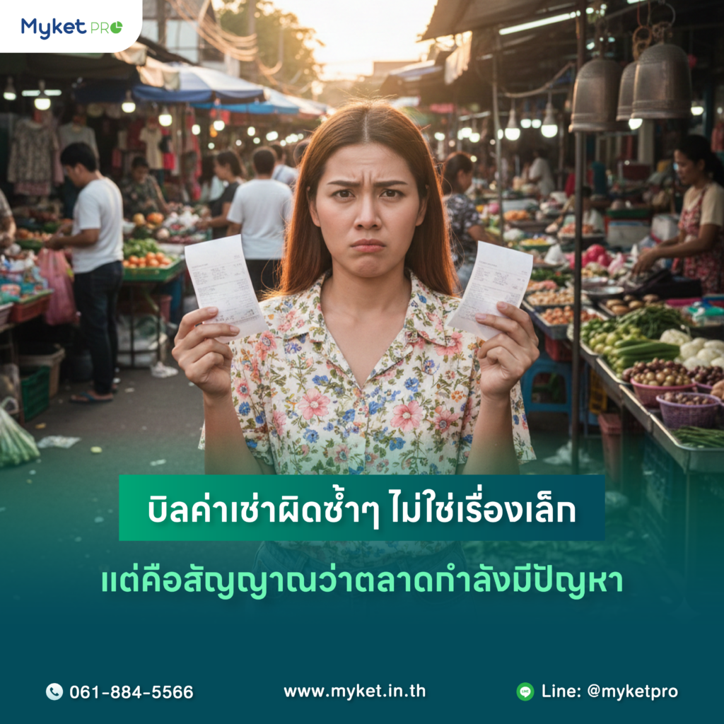 ในหลายตลาดนัด ปัญหา “บิลค่าเช่าผิด” มักถูกมองว่าเป็นเรื่องเล็ก แก้ไขหน้างานได้ แค่ปรับตัวเลขแล้วออกบิลใหม่ แต่หากปัญหานี้เกิดขึ้นซ้ำ ๆ ต่อเนื่องทุกเดือน นั่นไม่ใช่ความผิดพลาดทั่วไปอีกต่อไป หากแต่เป็น สัญญาณเตือนว่าระบบบริหารตลาดกำลังมีจุดอ่อนสำคัญ